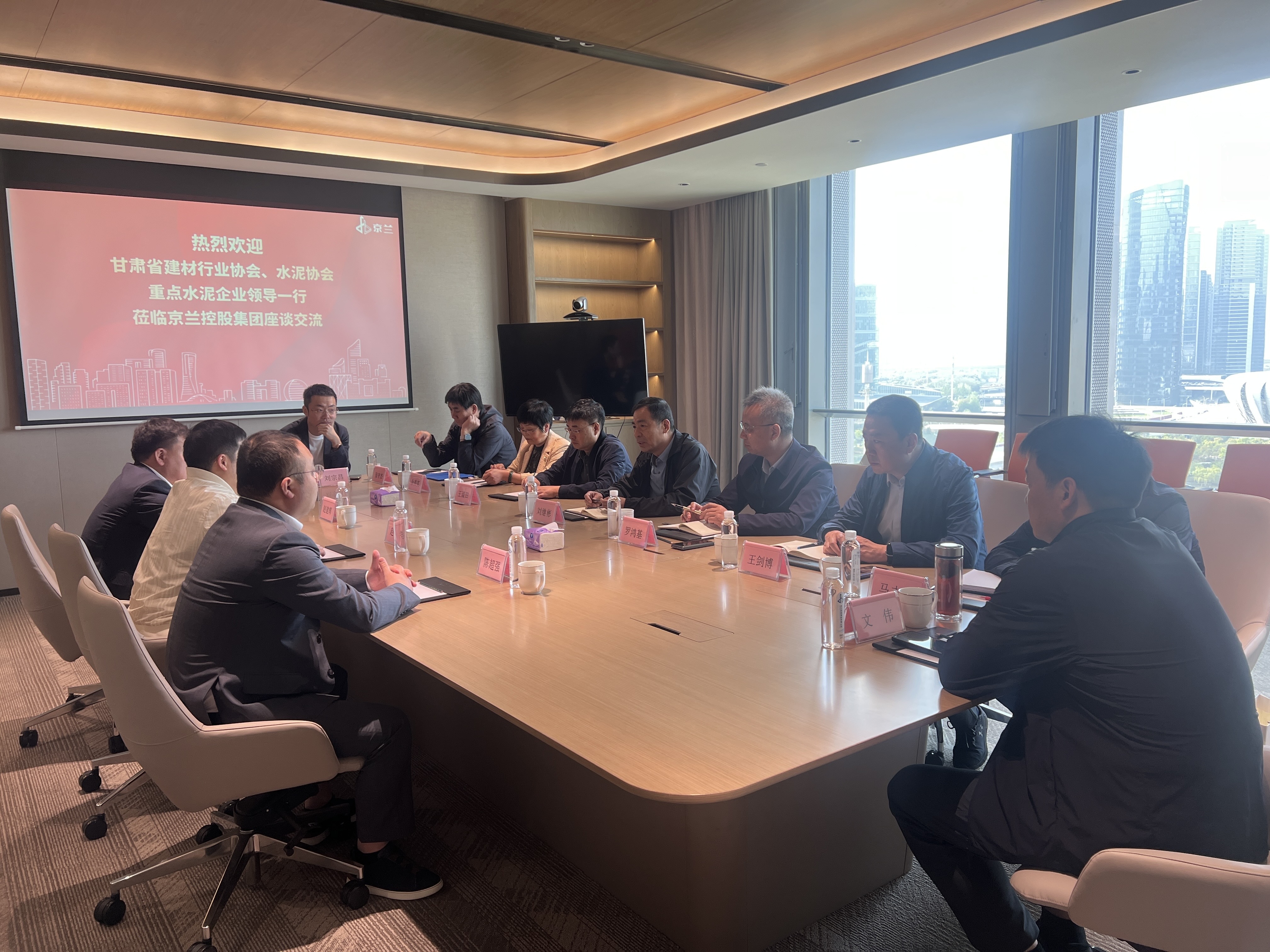 甘肅省建材行業協會副會長、甘肅祁連山水泥集團有限公司黨委書記、總裁羅鴻基,甘肅省建材行業協會、甘肅省水泥協會常務副會長兼秘書長王琰田,甘肅祁連山水泥集團有限公司黨委委員、副總裁王劍博,集團營銷中心總經理張守杰,甘肅省水泥協會執行副會長、甘肅中材水泥有限責任公司總經理馬志鋒,甘肅省水泥協會執行副會長、蘭州紅獅水泥有限公司總經理郭軼,甘肅省水泥協會副會長、臨夏海螺水泥有限責任公司總經理文偉,甘肅省水泥協會副會長、甘肅壽鹿山水泥有限責任公司總經理劉宗昌參加此次交流會議。京蘭集團董事長趙偉光、總經理趙志浩率管理團隊熱情接待,雙方就水泥行業生態建設、現代企業管理、技術創新、數字化轉型及綠色低碳發展等議題展開深入探討,并達成系列合作共識。